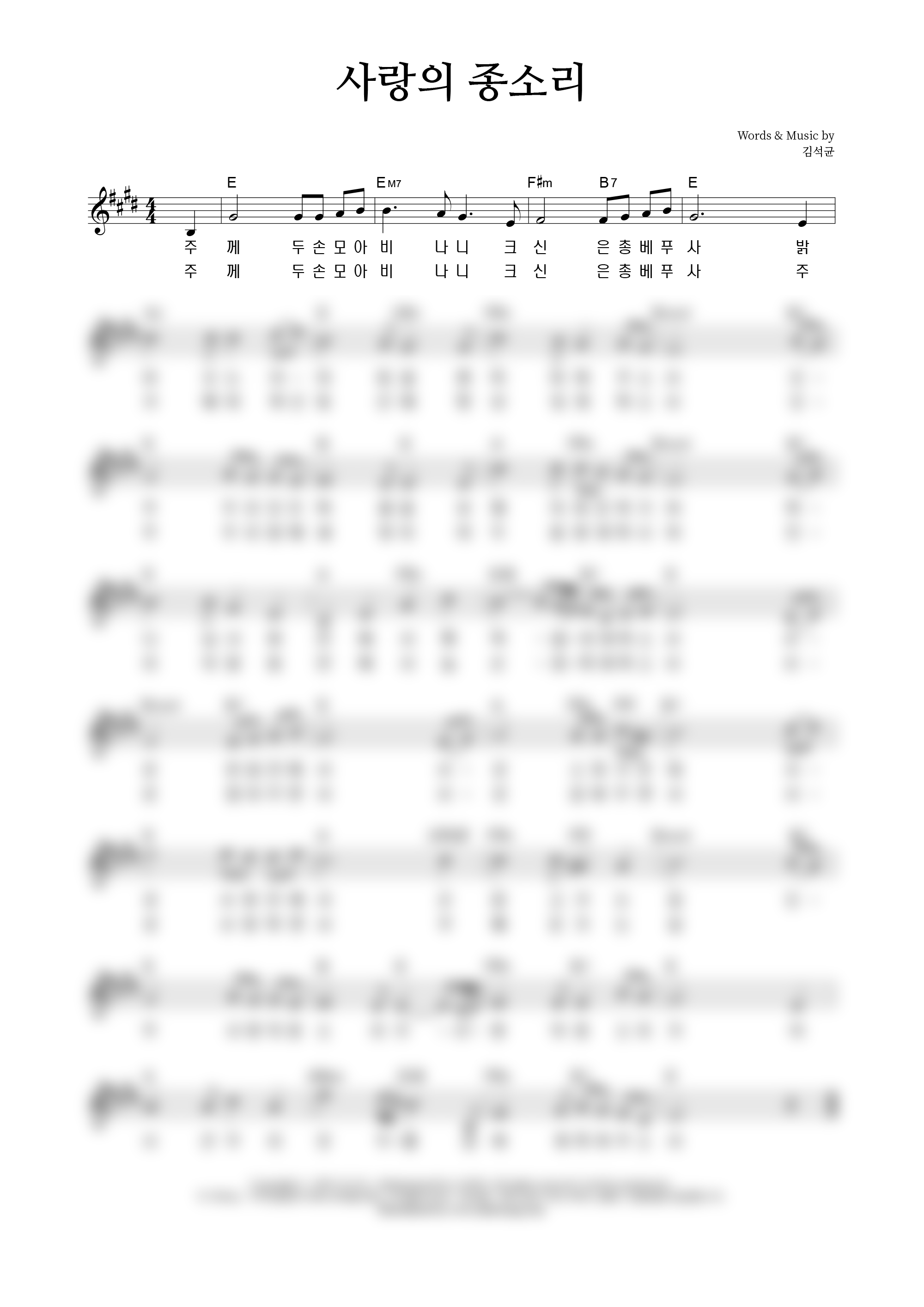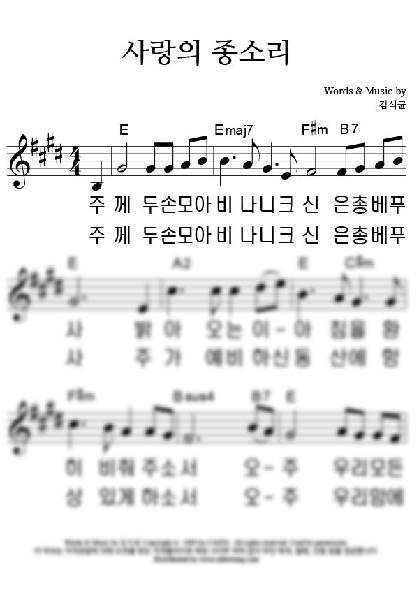 | 사랑의 종소리 | 성가 2부 + 피아노 반주 |