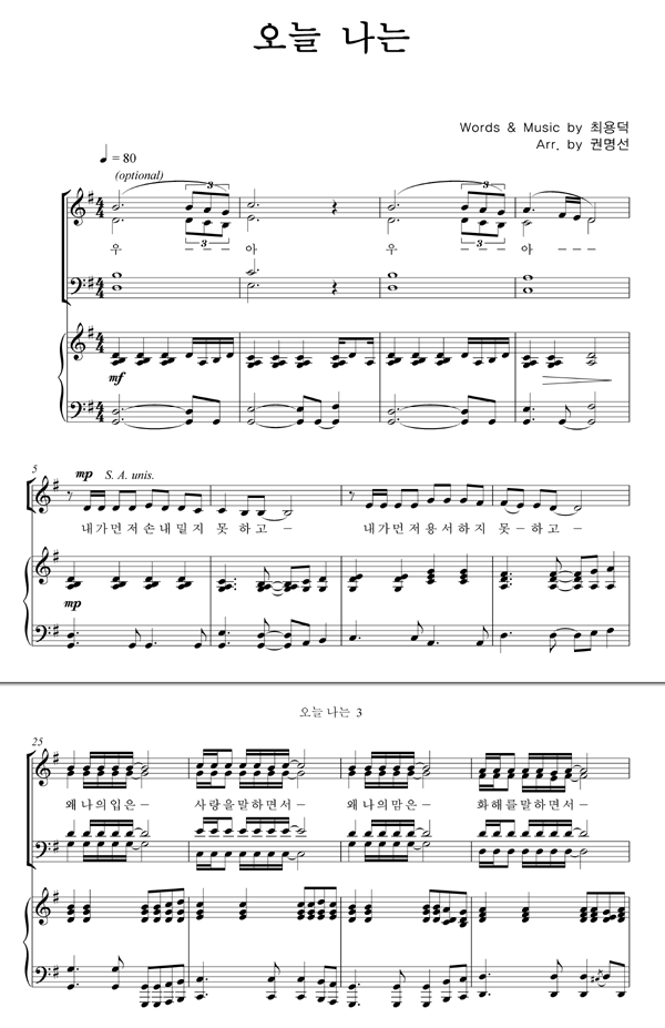 | 오늘 나는 | 성가 4부 + 피아노 반주 |