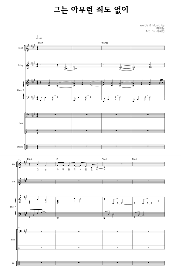 | 그는 아무런 죄도 없이 | 성가 3부 + 피아노 반주 |