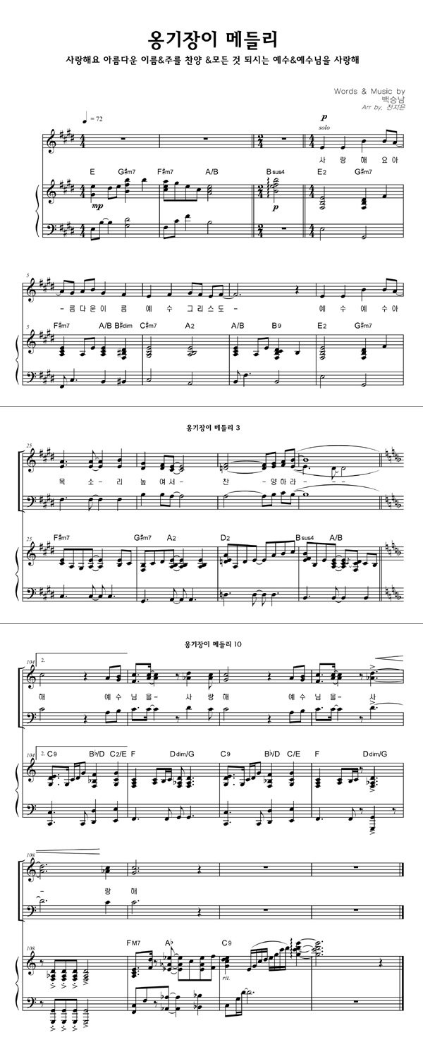 | 옹기장이 메들리 | 성가 3부 + 피아노 반주 |