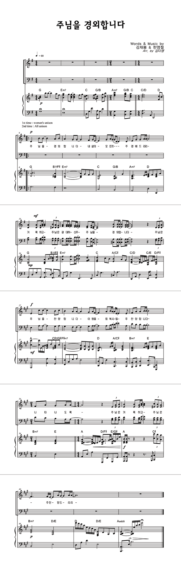 | 주님을 경외합니다 | 성가 4부 + 피아노 반주 |