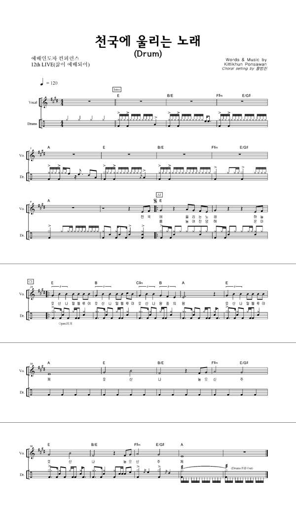 | 천국에 울리는 노래 | 성가 4부 + 피아노 반주 |