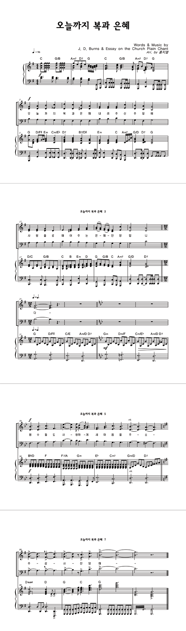 | 오늘까지 복과 은혜 | 성가 4부 + 피아노 반주 |