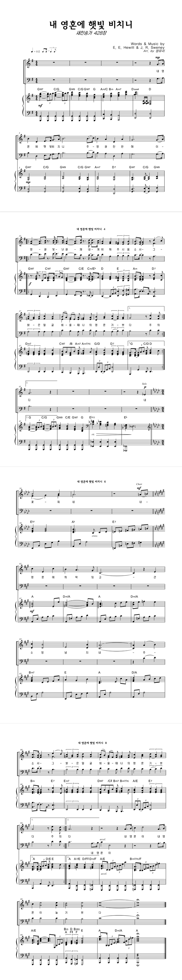 | 내 영혼에 햇빛 비치니 (찬송가 428장) | 성가 4부 + 피아노 반주 |