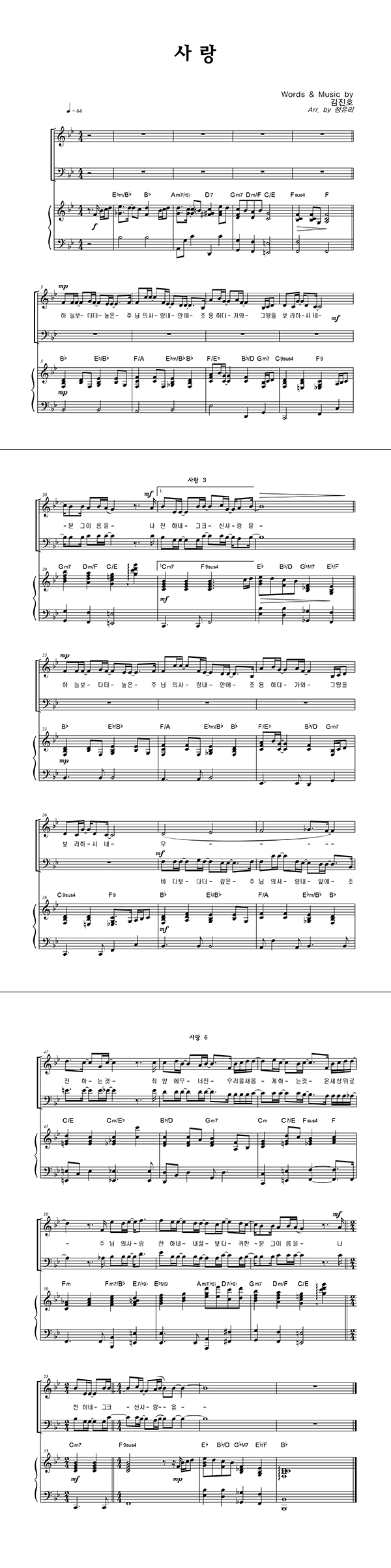 | 사랑 | 성가 2부 + 피아노 반주 |