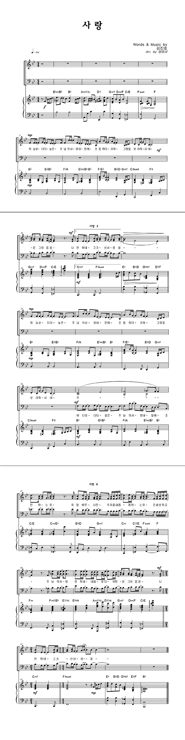 | 사랑 | 성가 3부 + 피아노 반주 |