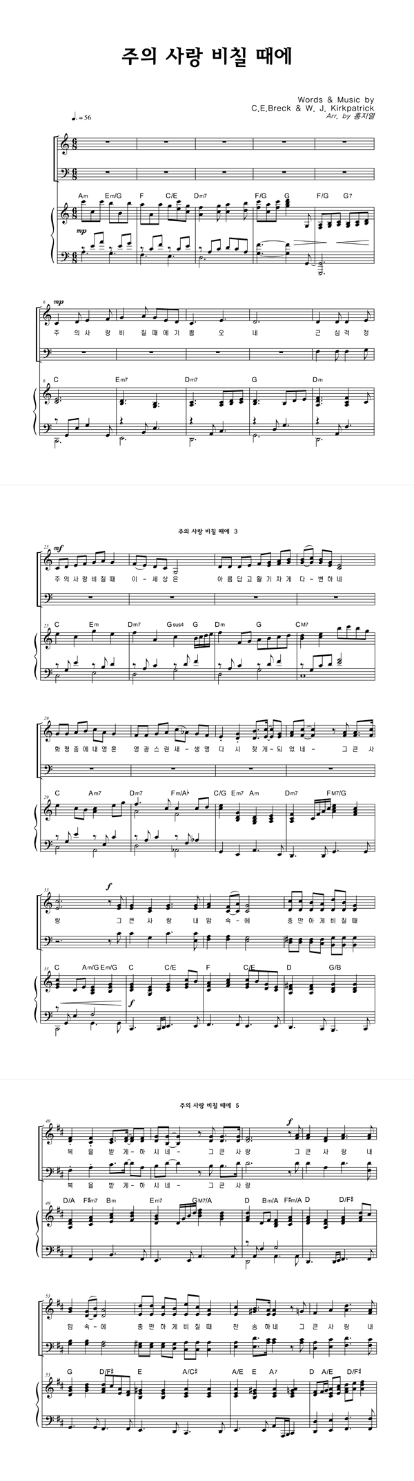 | 주의 사랑 비칠 때에 | 성가 3부 + 피아노 반주 |
