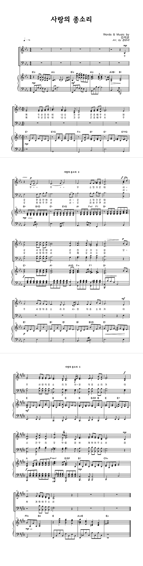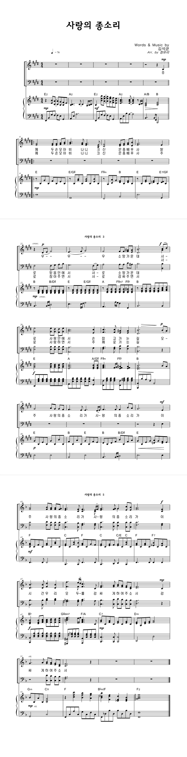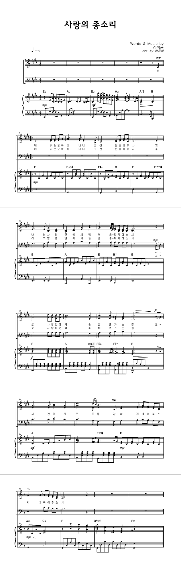 | 사랑의 종소리 | 성가 3부 + 피아노 반주 |