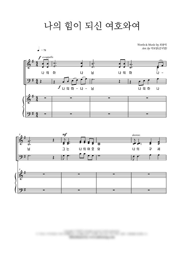 | 나의 힘이 되신 여호와여 | 성가 4부 + 피아노 반주 |