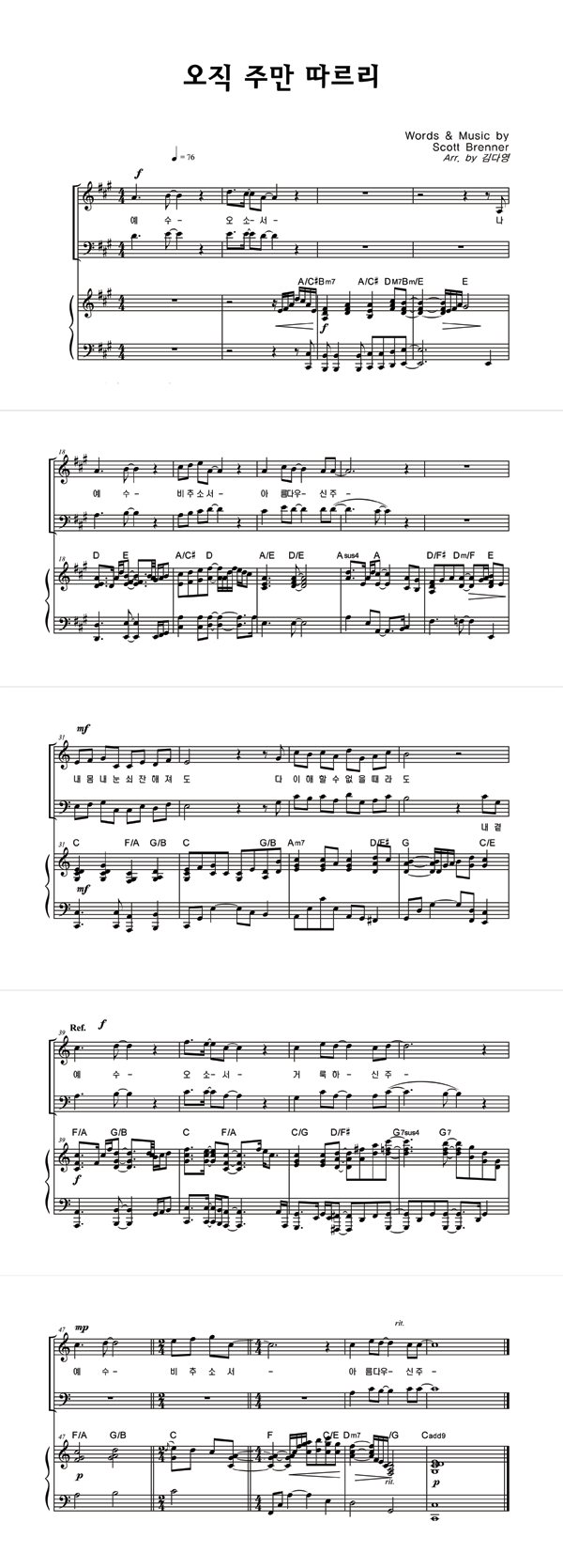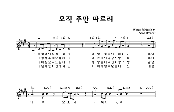 | 오직 주만 따르리 | 성가 4부 + 피아노 반주 |