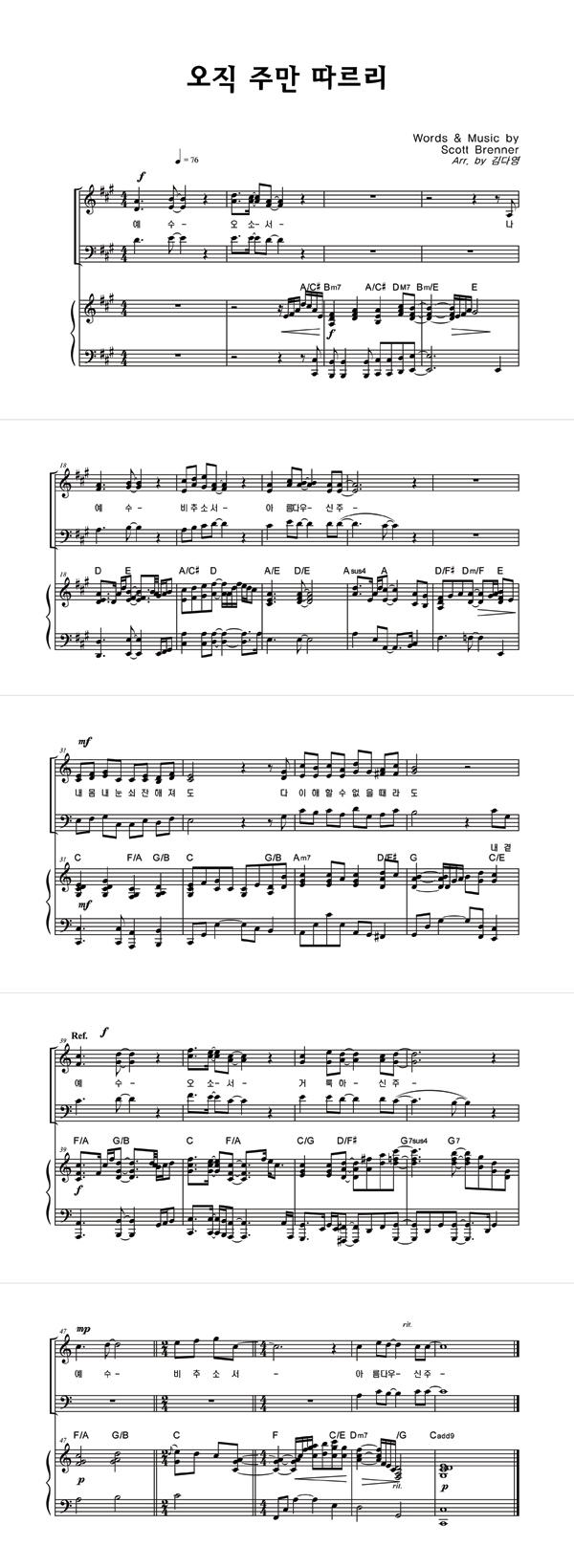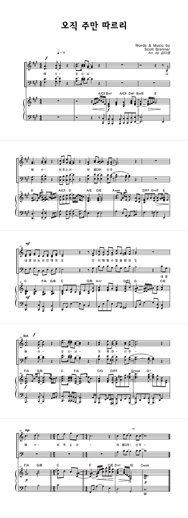 | 오직 주만 따르리 | 성가 3부 + 피아노 반주 |