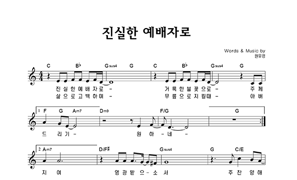 '진실한 예배자로' 의 다른 악보형식
