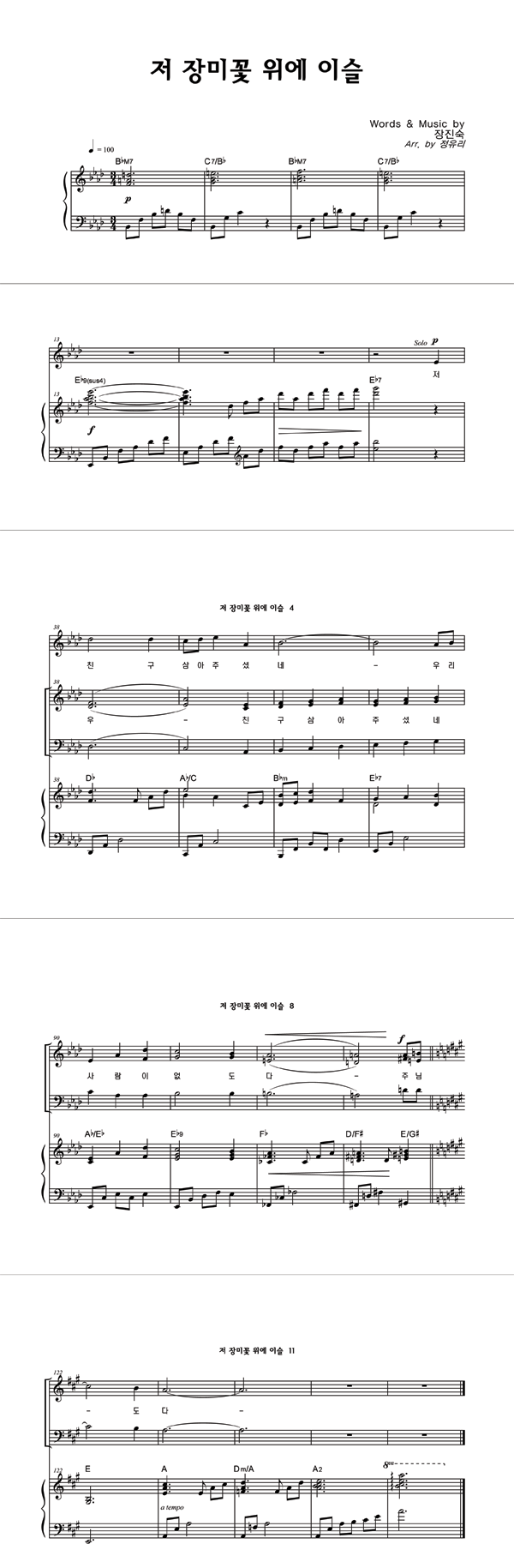 | 저 장미꽃 위에 이슬 | 성가 4부 + 피아노 반주 |