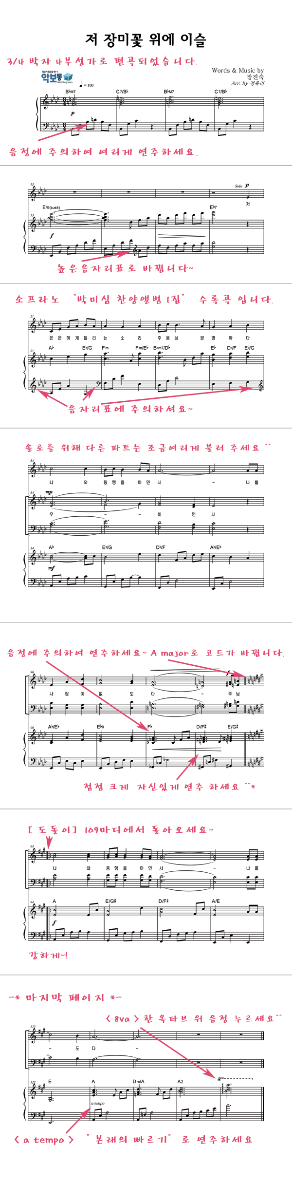 '저 장미꽃 위에 이슬' 의 다른 악보형식