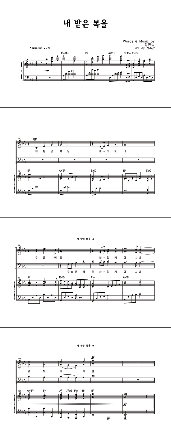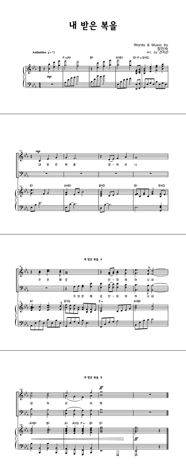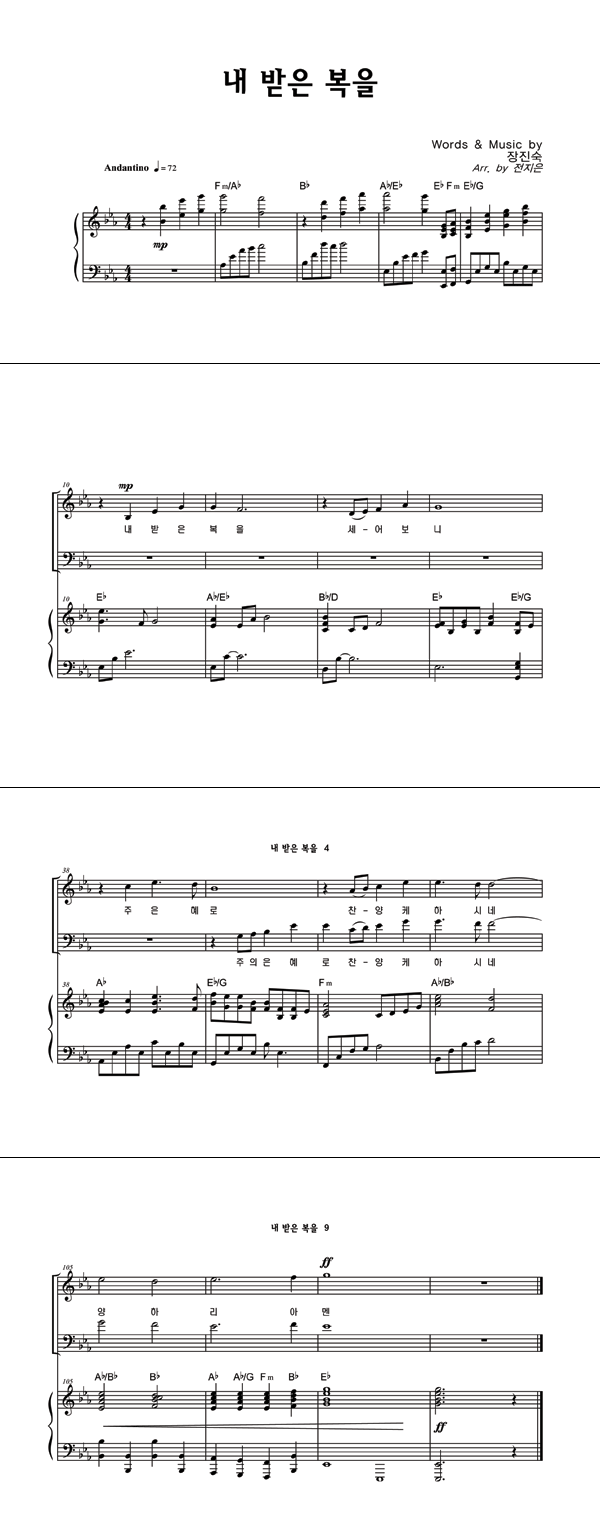 | 내 받은 복을 | 성가 4부 + 피아노 반주 |