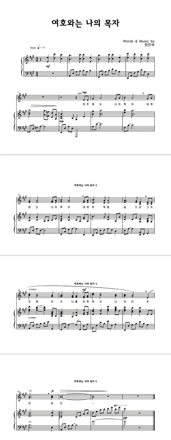| 여호와는 나의 목자 | 성가 2부 + 피아노 반주 |