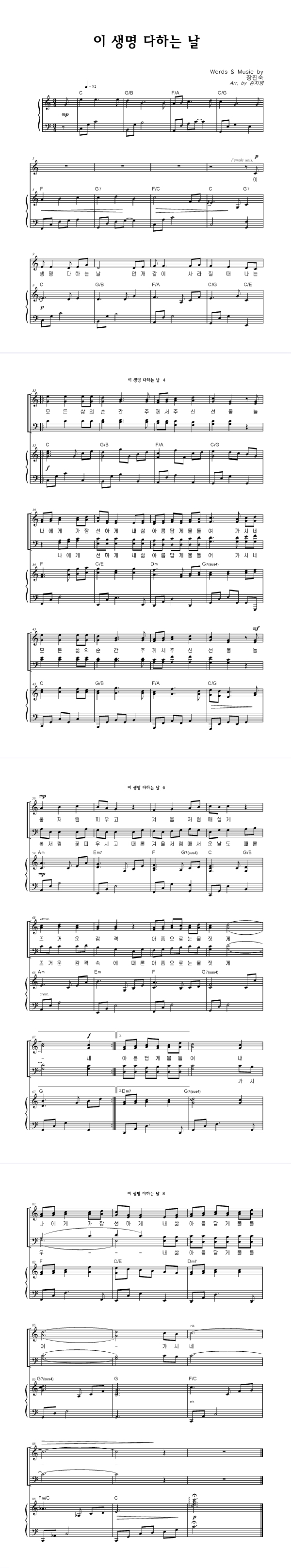 | 이 생명 다하는 날 | 성가 2부 + 피아노 반주 |