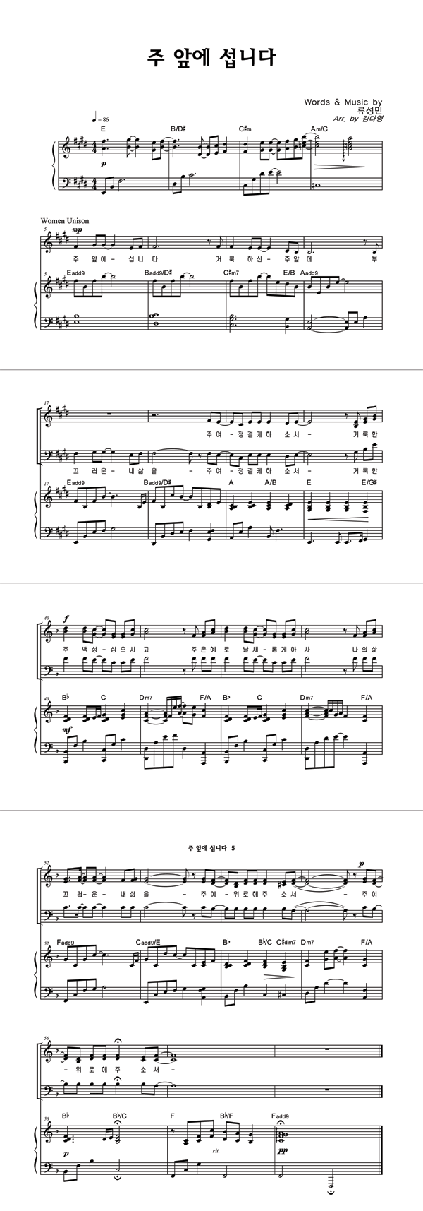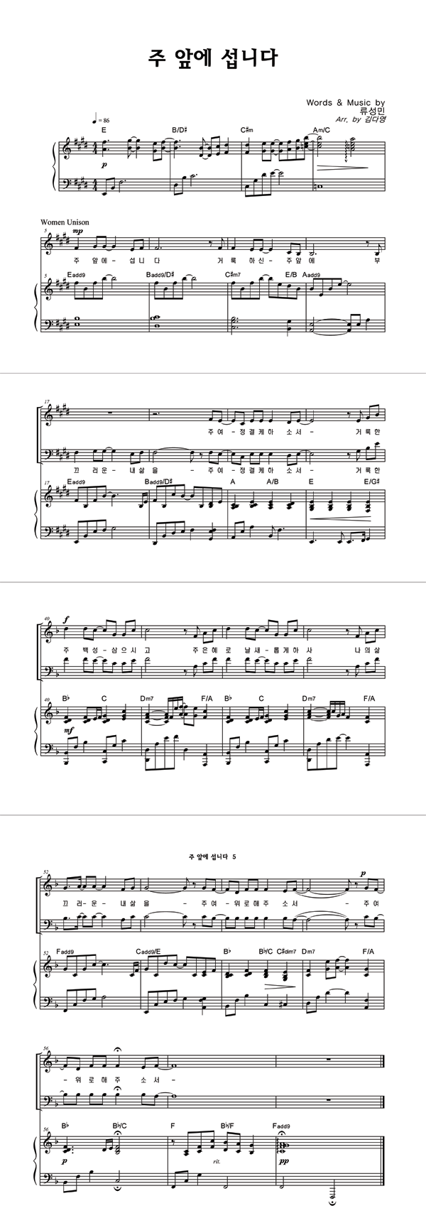 | 주 앞에 섭니다 | 성가 2부 + 피아노 반주 |