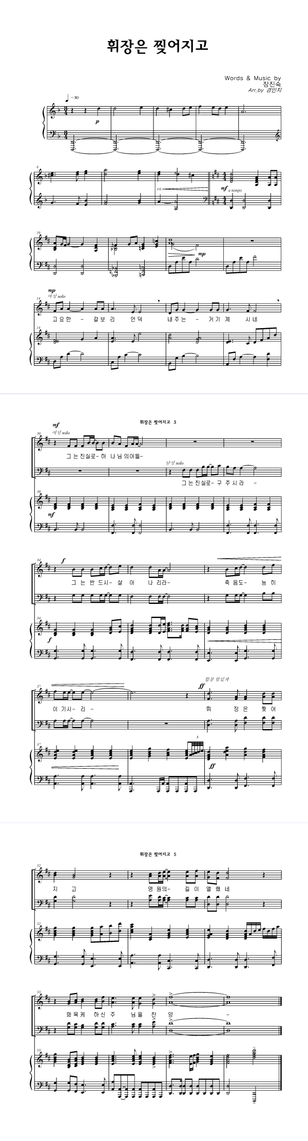 | 휘장은 찢어지고 큰글씨 | 성가 4부 + 피아노 반주 |