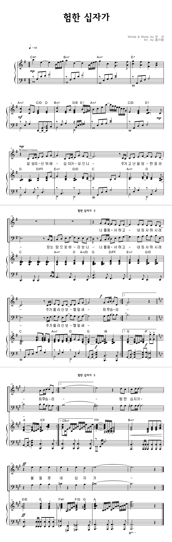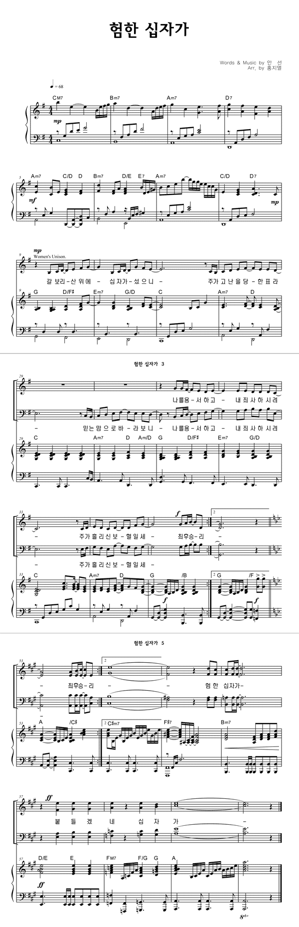 | 험한 십자가 | 성가 3부 + 피아노 반주 |