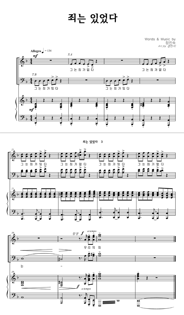 | 죄는 있었다 | 성가 4부 + 피아노 반주 |