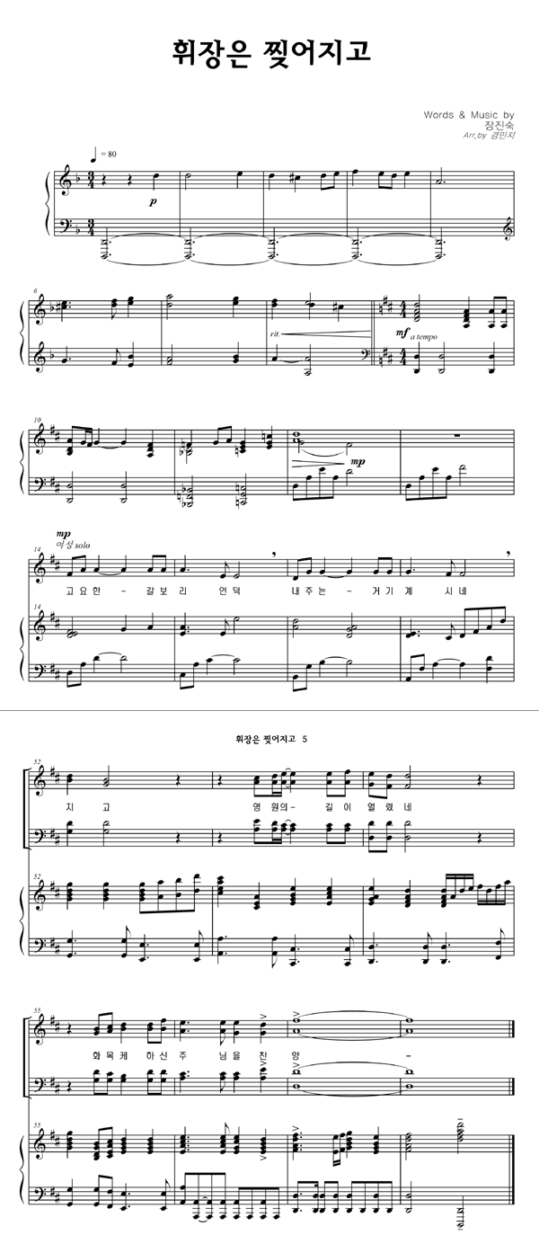 | 휘장은 찢어지고 | 성가 4부 + 피아노 반주 |