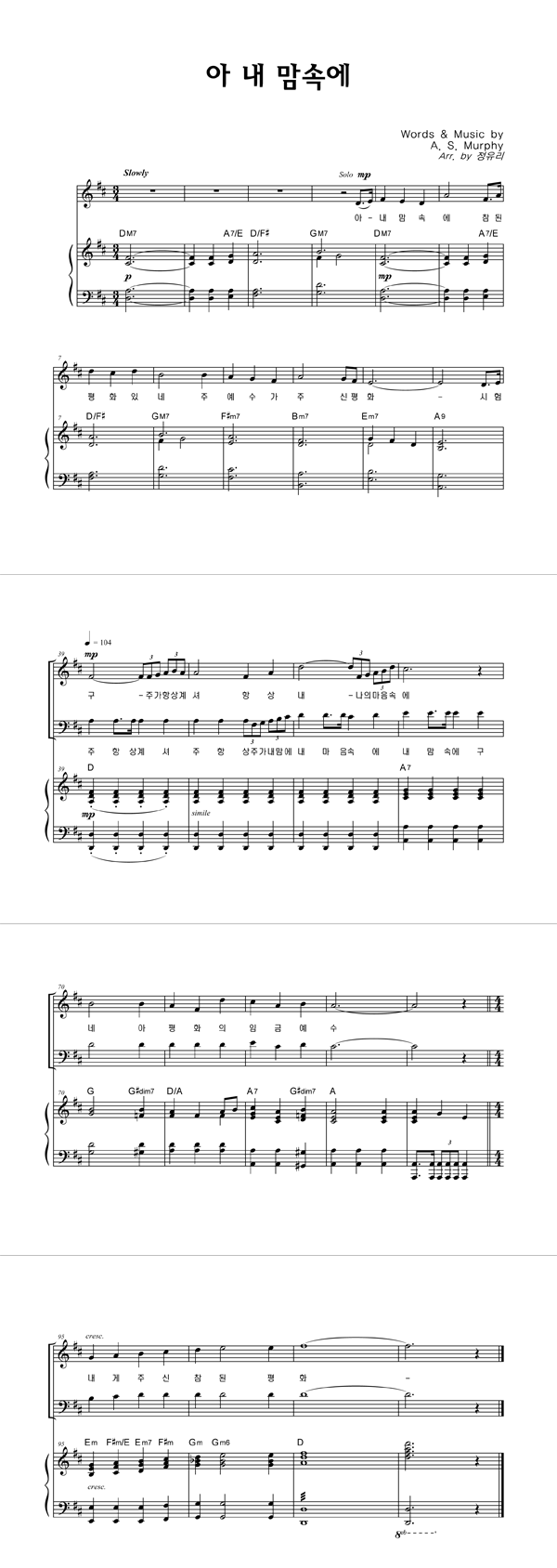 | 아 내 맘속에 | 성가 3부 + 피아노 반주 |