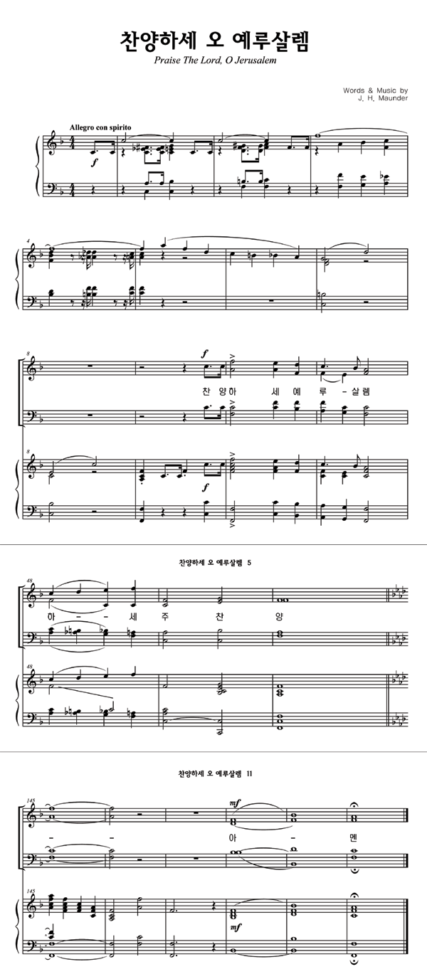 '찬양하세 오 예루살렘' 의 다른 악보형식