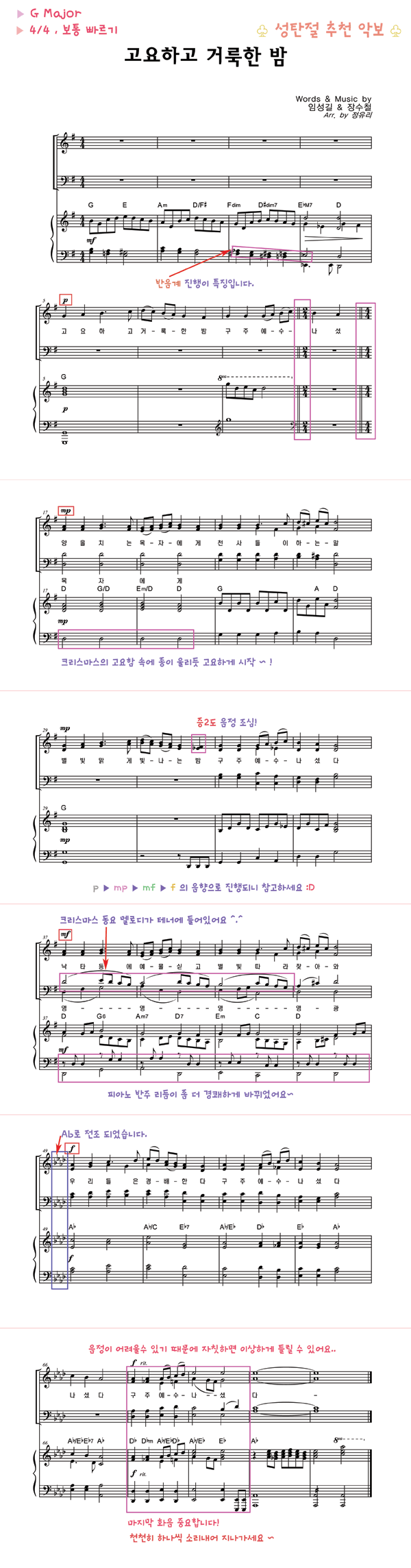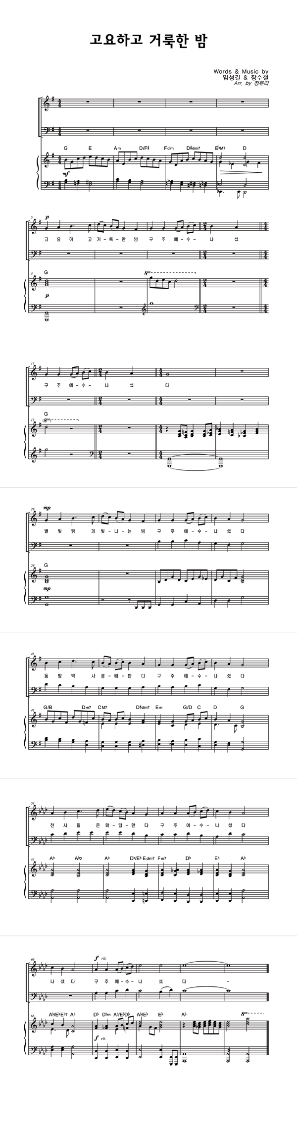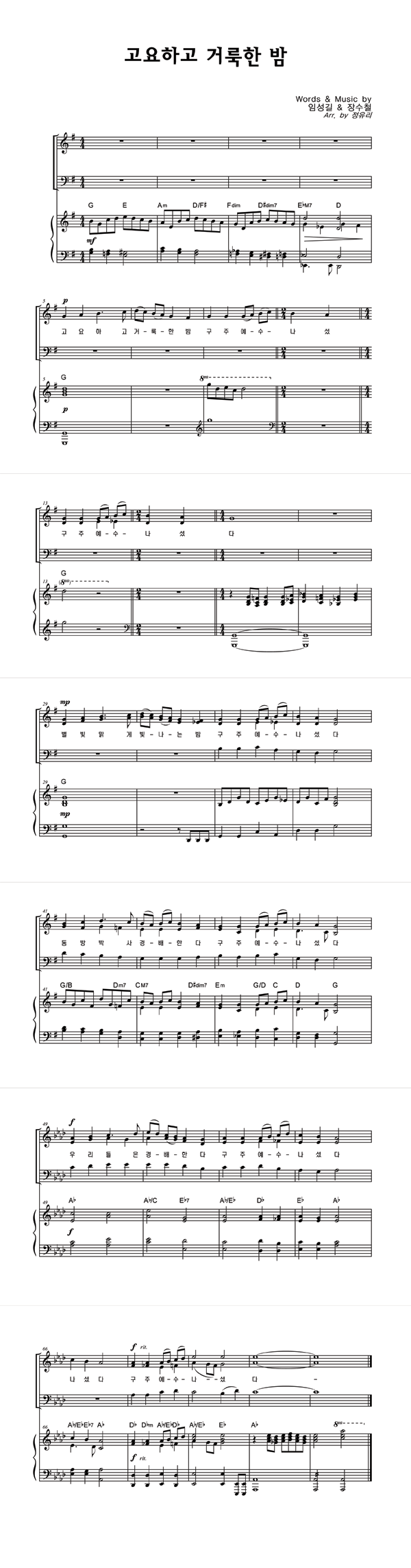 | 고요하고 거룩한 밤 | 성가 3부 + 피아노 반주 |