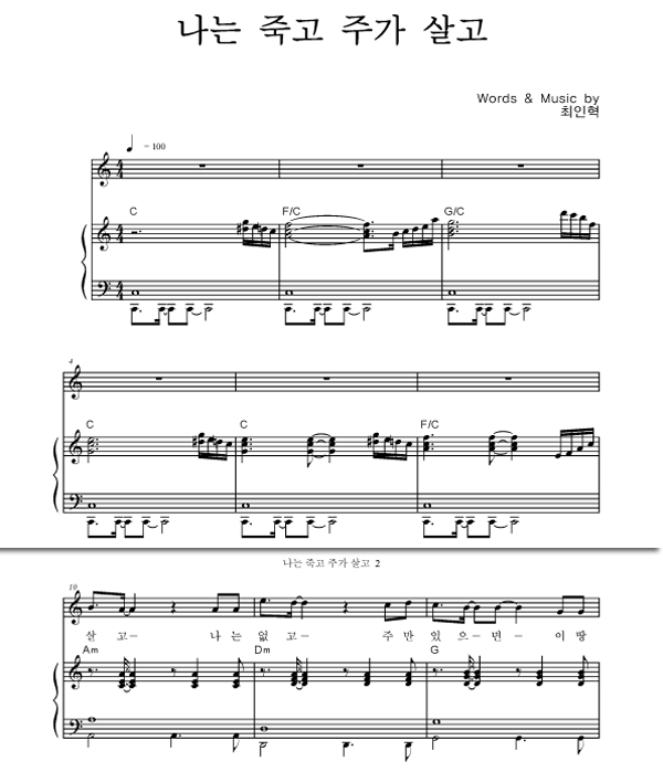 | 나는 죽고 주가 살고 | 성가 4부 + 피아노 반주 |