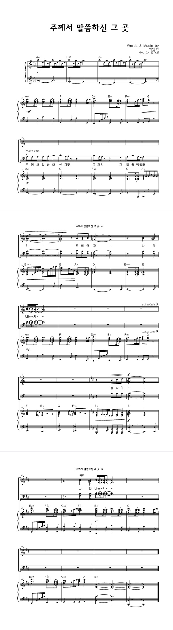 | 주께서 말씀하신 그 곳 | 성가 3부 + 피아노 반주 |