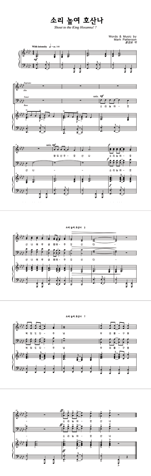 '소리 높여 호산나' 의 다른 악보형식