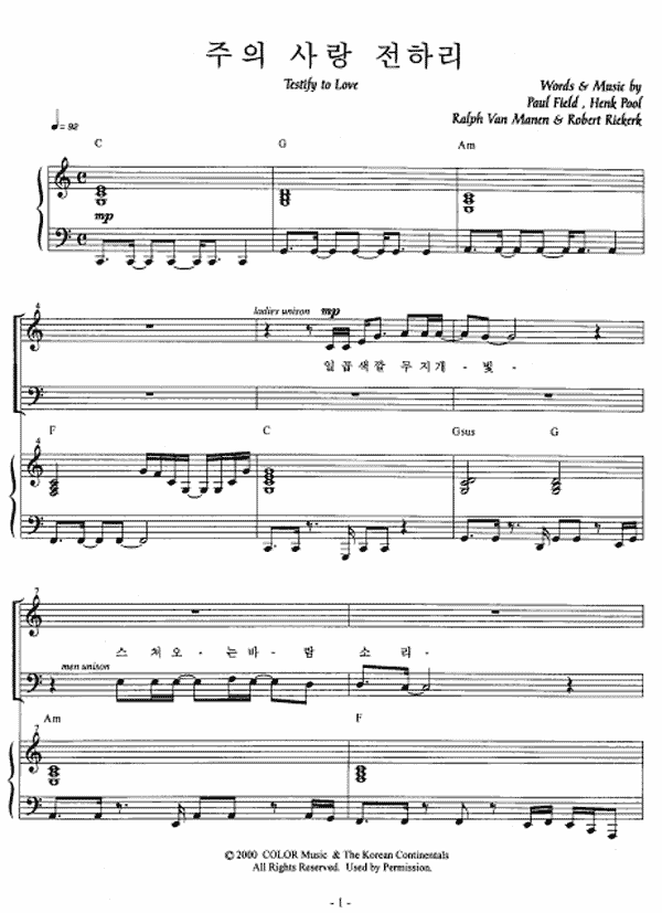 | 주의 사랑 전하리 | 성가 4부 + 피아노 반주 |