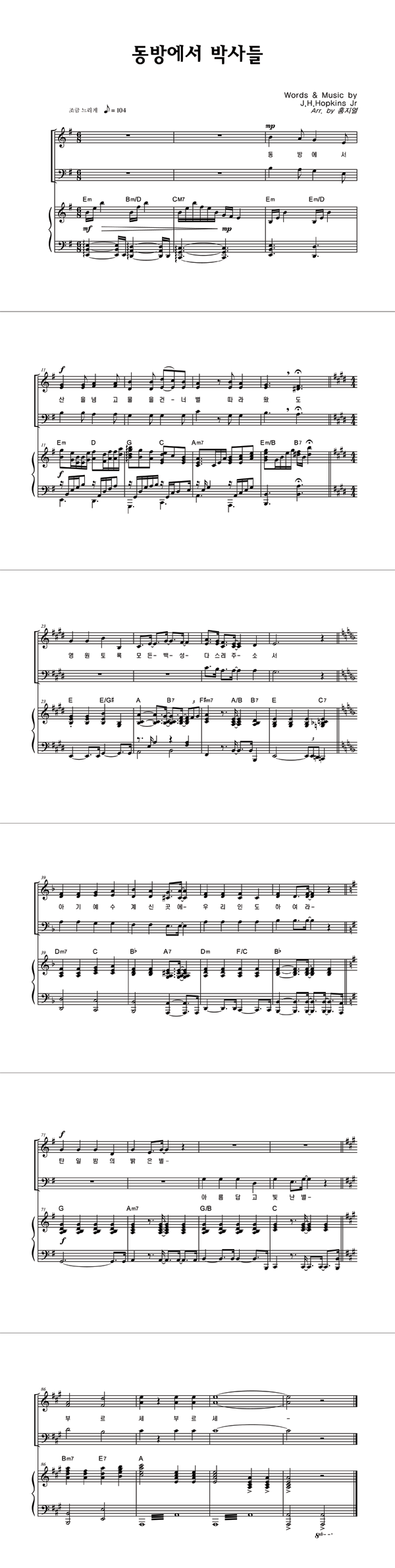 | 동방에서 박사들 | 성가 4부 + 피아노 반주 |