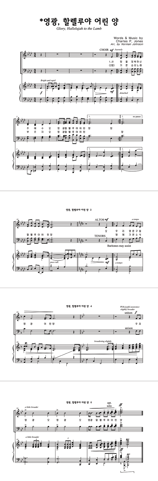 '영광, 할렐루야 어린 양' 의 다른 악보형식