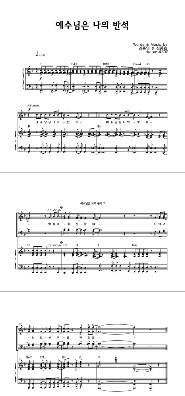| 예수님은 나의 반석 | 성가 3부 + 피아노 반주 |