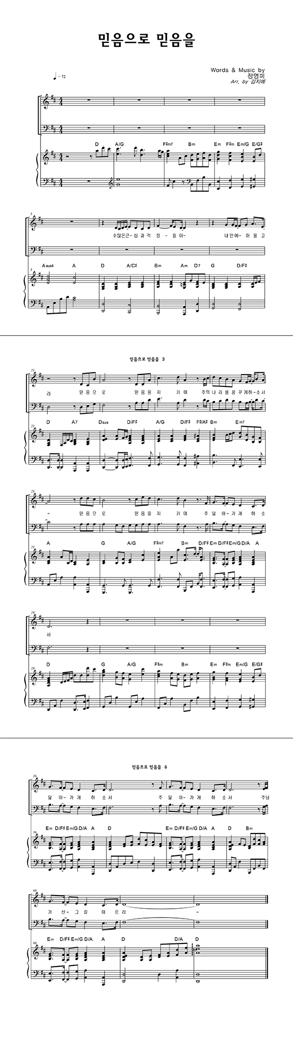 | 믿음으로 믿음을 | 성가 3부 + 피아노 반주 |