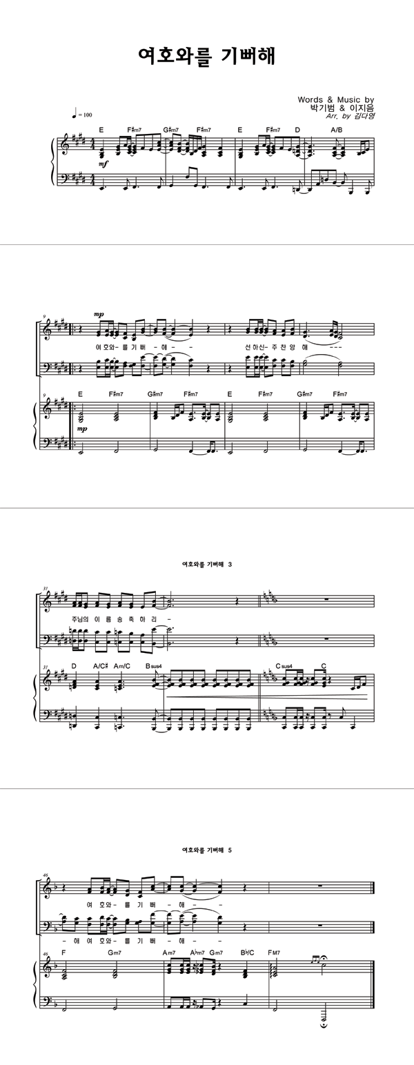 | 여호와를 기뻐해 | 성가 4부 + 피아노 반주 |