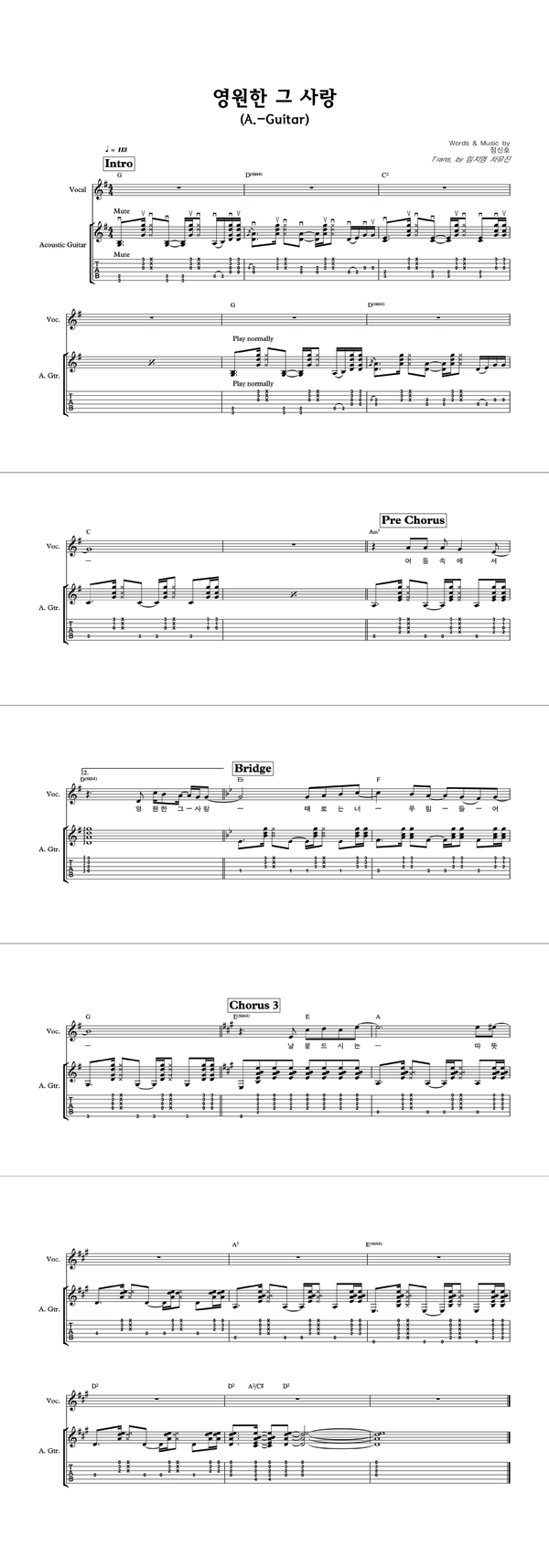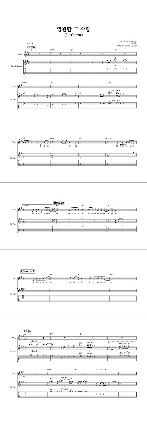 '영원한 그 사랑' 의 다른 악보형식