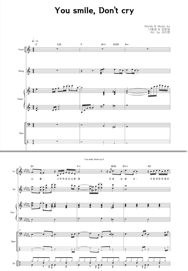 | You Smile, Don't Cry | 성가 2부 + 피아노 반주 |