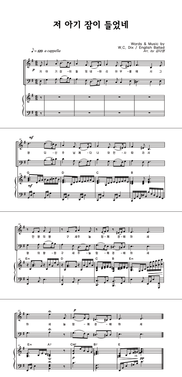 | 저 아기 잠이 들었네 (113장) | 성가 3부 + 피아노 반주 |