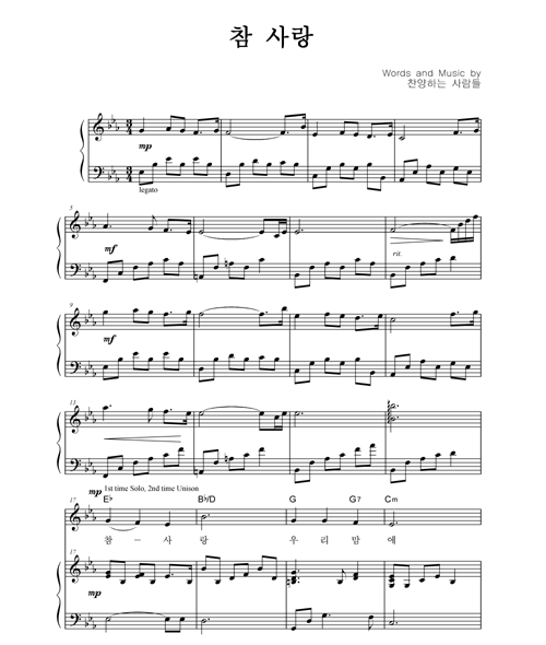 | 참 사랑 | 성가 4부 + 피아노 반주 |