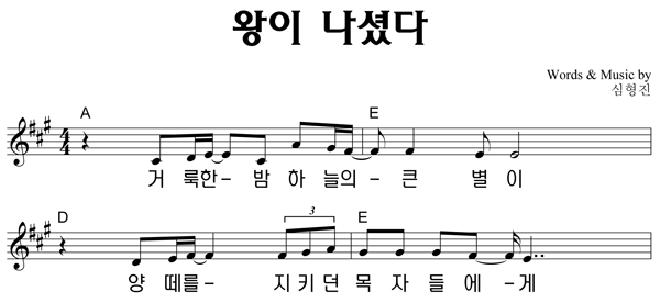| 왕이 나셨다 | 성가 3부 + 피아노 반주 |