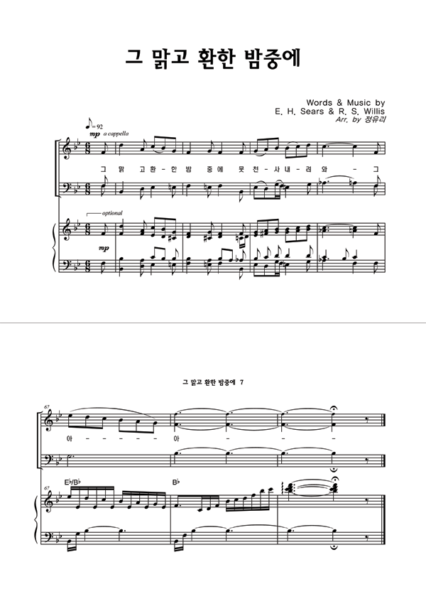 | 그 맑고 환한 밤 중에 | 성가 2부 + 피아노 반주 |