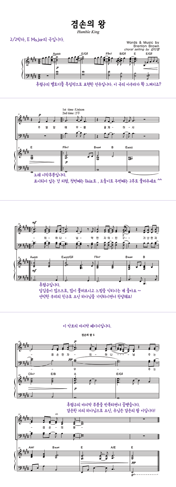 | 겸손의 왕 | 성가 2부 + 피아노 반주 |