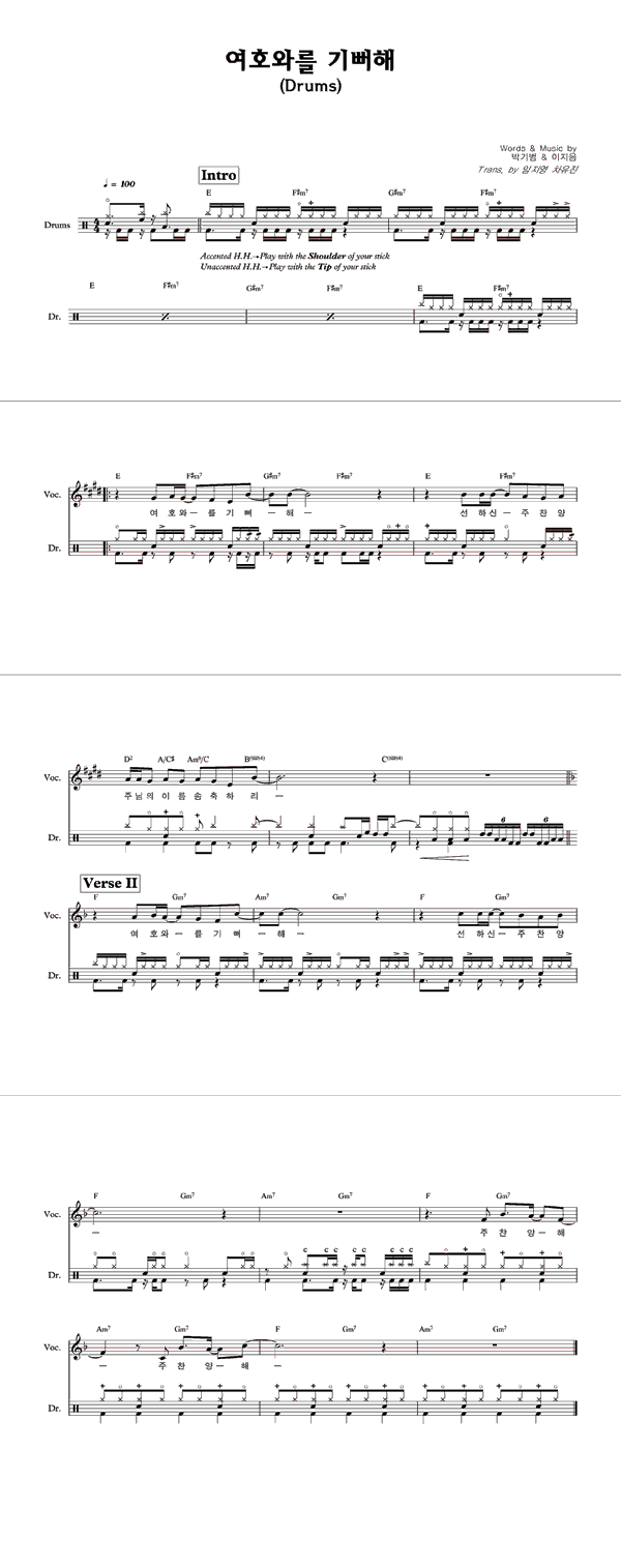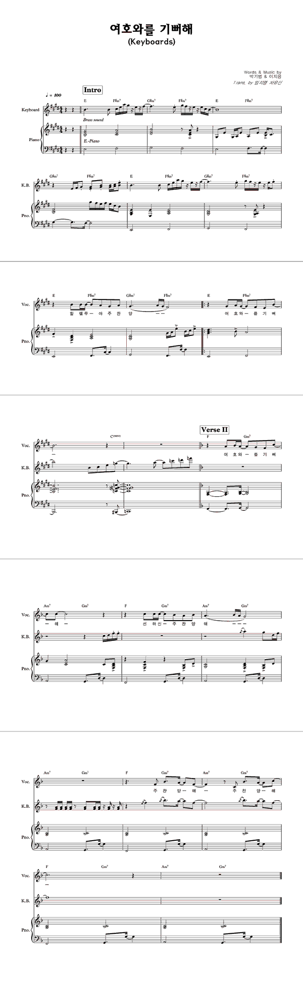 | 여호와를 기뻐해 | 성가 4부 + 피아노 반주 |