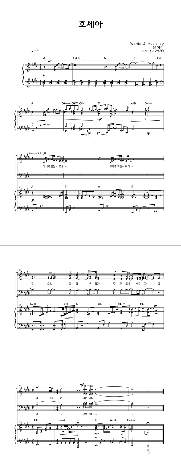 | 호세아 | 성가 2부 + 피아노 반주 |