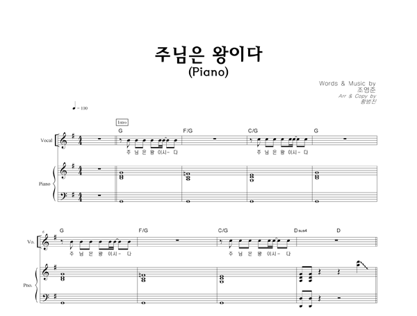 | 주님은 왕이다 | 성가 2부 + 피아노 반주 |
