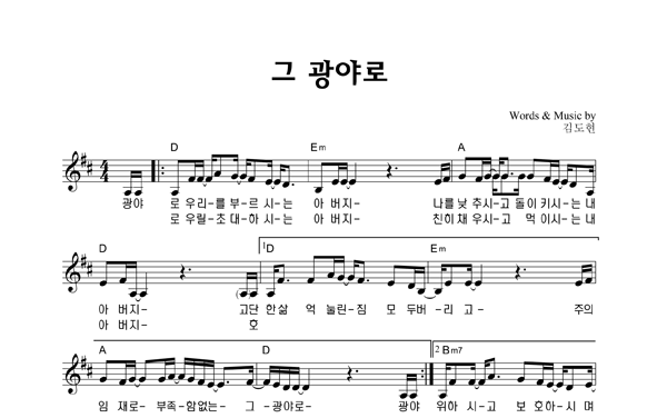 | 그 광야로 | 성가 2부 + 피아노 반주 |