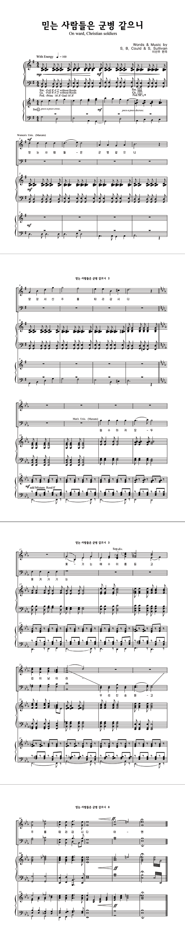 | 믿는 사람들은 군병 같으니 | 성가 4부 + 피아노 반주 |